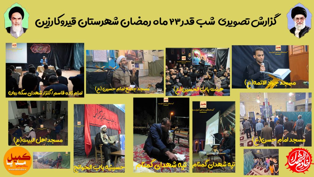 به گزارش میدانی واحد خبری کمیل مدیا ، پنجشنبه ۲۴ فروردین ماه از ساعت ۲۳:۰۰ برنامه پوشش کامل مراسم سومین شب قدر را آغاز نمودیم و در پایان موفق شدیم تقریبا تمامی محافل برگزاری مراسم شب های قدر شهر قیر را ، محل به محل مراجعه کرده و گزارش تصویری را تهیه کنیم و اکنون پس از پالایش و آماده سازی این گزارش ، در ادامه تقدیم حضورتان می کنیم.