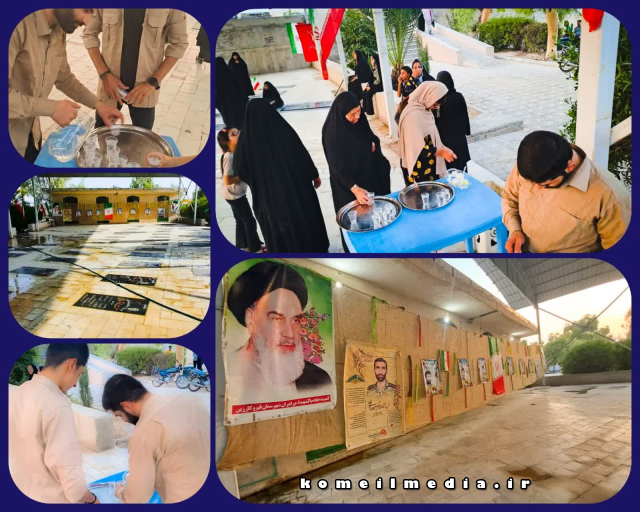 چهارمین ایستگاه صلواتی گروه فرهنگی و مذهبی کمیل ، پنجشنبه ۱۵تیرماه ۱۴۰۲ در گلزار شهدای شهر قیر به همت بچه های کمیل و خادمین الشهداء عزیز برگزار گردید. به مناسبت…